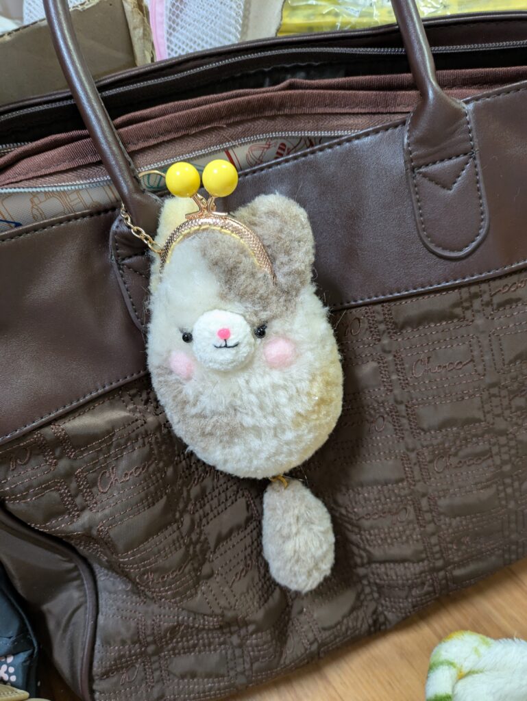 気分転換に行ったハンドメイドマルシェで買ったモフモフポーチです。